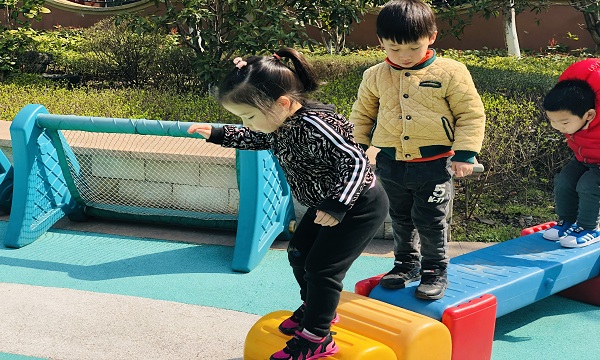 快乐的一天就这样在运动中开始了,3月28日一早,老师便带领小朋友进行户外游戏,有好玩的平衡游戏、跳跃游戏、合作游戏等。孩子们时而钻、时而跳……瞧,虽然是小班的孩子,但是个个神气十足,玩得不亦乐乎。这样开放式的锻炼,让孩子们不再局限在一方小天地,他们可以玩更多的器具,真正做晨间锻炼的小主人。