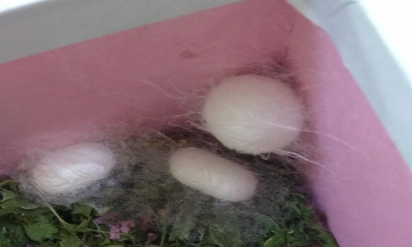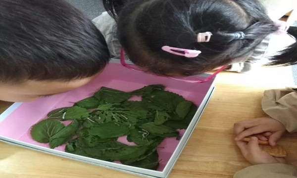 在养蚕过程中,小朋友都自愿担当了饲养员:找桑叶、喂蚕宝宝、清理蚕盒。通过饲养与观察蚕宝宝使他们知道了:蜕皮、吐丝、结茧、破茧变成蚕蛹、化蛹成蛾、最后有很多的蚕籽,孩子们通过亲身体验过程中找到答案,有了更多的喜悦和收获!