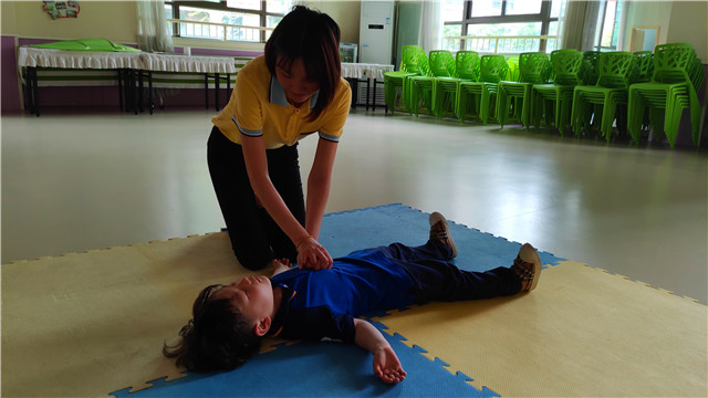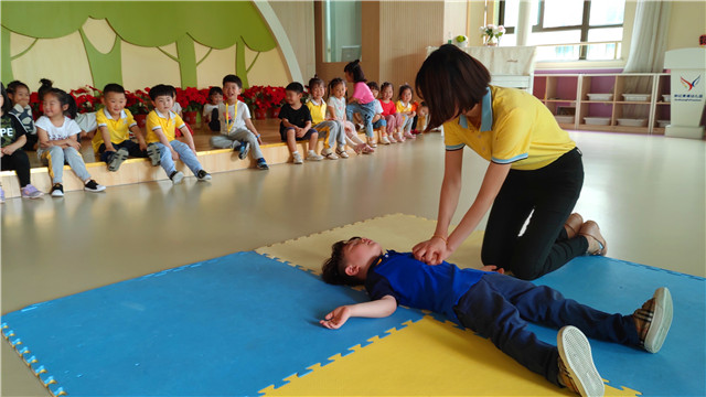 上午10点,教师通过安全平台进行了防溺水知识学习,使幼儿对溺水的原因以及如何预防溺水有了系统、全面的了解。接着拟设模拟场景,进行求救、互救、自救的防溺水实践演练示范,同时老师还在演练现场和演示对溺水人员上岸后的急救处理方法。最后,老师指导幼儿开展对溺水者实施医疗急救的模拟演练。通过活动,不但告知幼儿私自随意玩水嬉水的危险性,还让孩子们了解到基本的常识,学会基本的自护、自救方法。同时增强了师生重视安全的意识。