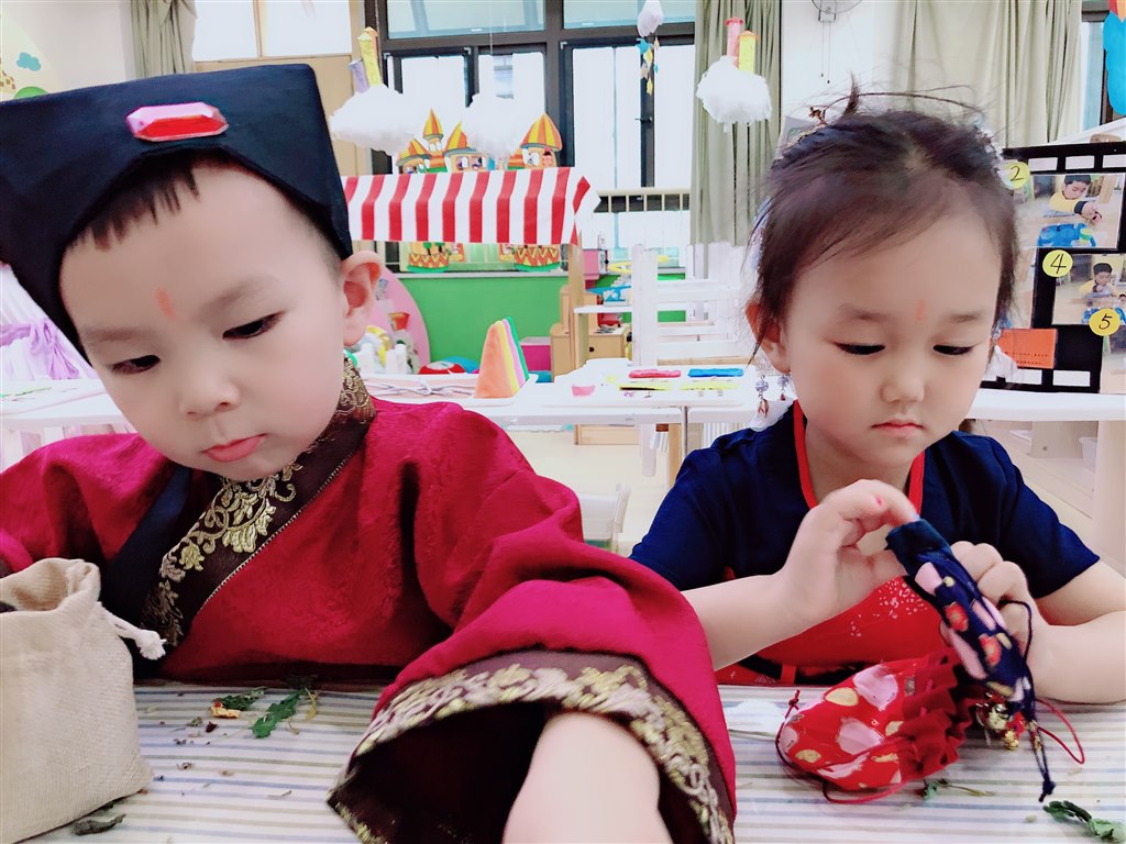 为了增进小朋友们对中国传统文化的兴趣,了解中国传统文化的习俗,6月6日,小班幼儿开展了“点雄黄,做香囊”的主题教育活动。