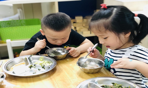 美妙的音乐缓缓响起,孩子们安静而又愉快的开始进餐啦。进餐时老师细心引导,培养孩子每一种食物都要吃,不挑食的好习惯。瞧,孩子们吃的多香呀,用餐后,宝贝们依次放好碗勺、漱口、擦嘴,然后安静的看起书来。待所有孩子都吃完了,老师带领着孩子们去户外散步。自主用餐,既快乐,又享乐!(撰稿:李清秋 审核:蒋丽君)
