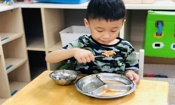著名教育家陈鹤琴先生说过:“凡是幼儿自己能做的,应该让他们自己去做!幼儿习惯养成的不好,终身受其累。”2019年9月3日中三班幼儿进行自主进餐活动。餐前,教师营造轻松愉快地进餐环境,玩玩手指游戏、介绍营养菜谱。
