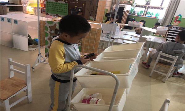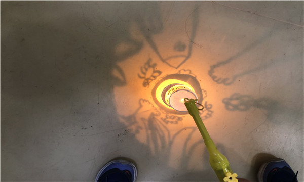 在活动过程中,小朋友发现,有了光就会有影子,没有光的话影子就不会出现;根据查找资料小朋友还深入了解了,投影灯是如何照射出图案的。为此进行了三次实验,在第一次的实验中,小朋友用锥子在纸杯上戳洞发现用灯照射出来的图案很模糊;所以有了进一步的第二次实验,小朋友把纸杯一截二用塑封膜围绕纸杯,发现照射出的影子有了比较清晰的图案;为了有更加清晰的效果图案,又进行了第三次的操作,这次用打孔机在纸上打孔,再用灯在里面进行照射,发现照射出来的图案更加的清晰了。