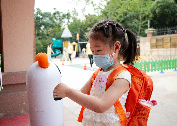 5月27日我们迎来了小班的开学,老师们早早地“装扮”好就在大门口准备迎接啦,该园采取错峰入园,8点40分至9点30分期间是小托班,入园幼儿分2个批次完成晨检、测温、洗手等入园程序。孩子们经过保健老师的晨检,入园后来到洗手区,只要将手放在出液口,感应式洗手机便会自动挤出免洗洗手液。晨检完成后,我们来到了户外游戏场地。滑滑梯、钻山洞、平衡木、攀爬架,昔日不见得小伙伴更是凑在一起快乐地玩耍着。孩子们脸上都洋溢着甜甜的笑容,让沉寂已久的校园充满了欢声笑语。(撰稿:吴钰婷 瞿晓燕 审核:蒋丽君)