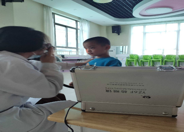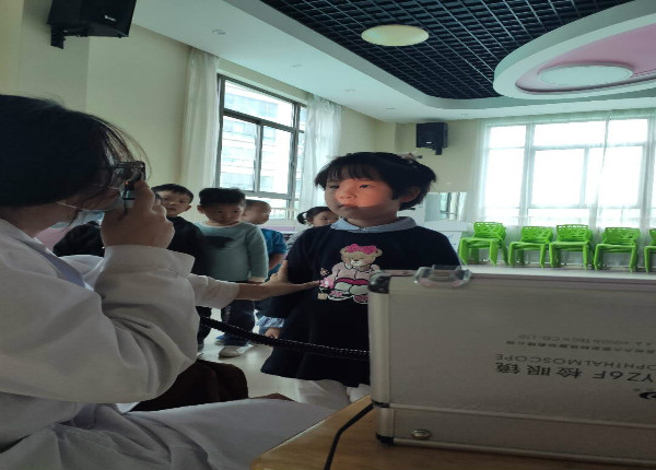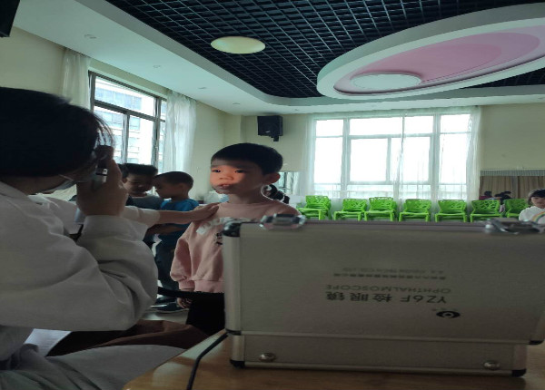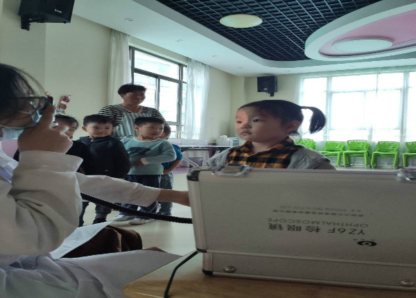 在各班老师的引导和鼓励下,孩子们排着整齐的队伍,安静有序地进行检查。和蔼可亲的医生使用科学的仪器设备为幼儿仔细做着眼部检查,并认真、详细的做好了相关记录,排查视力情况异常的幼儿。