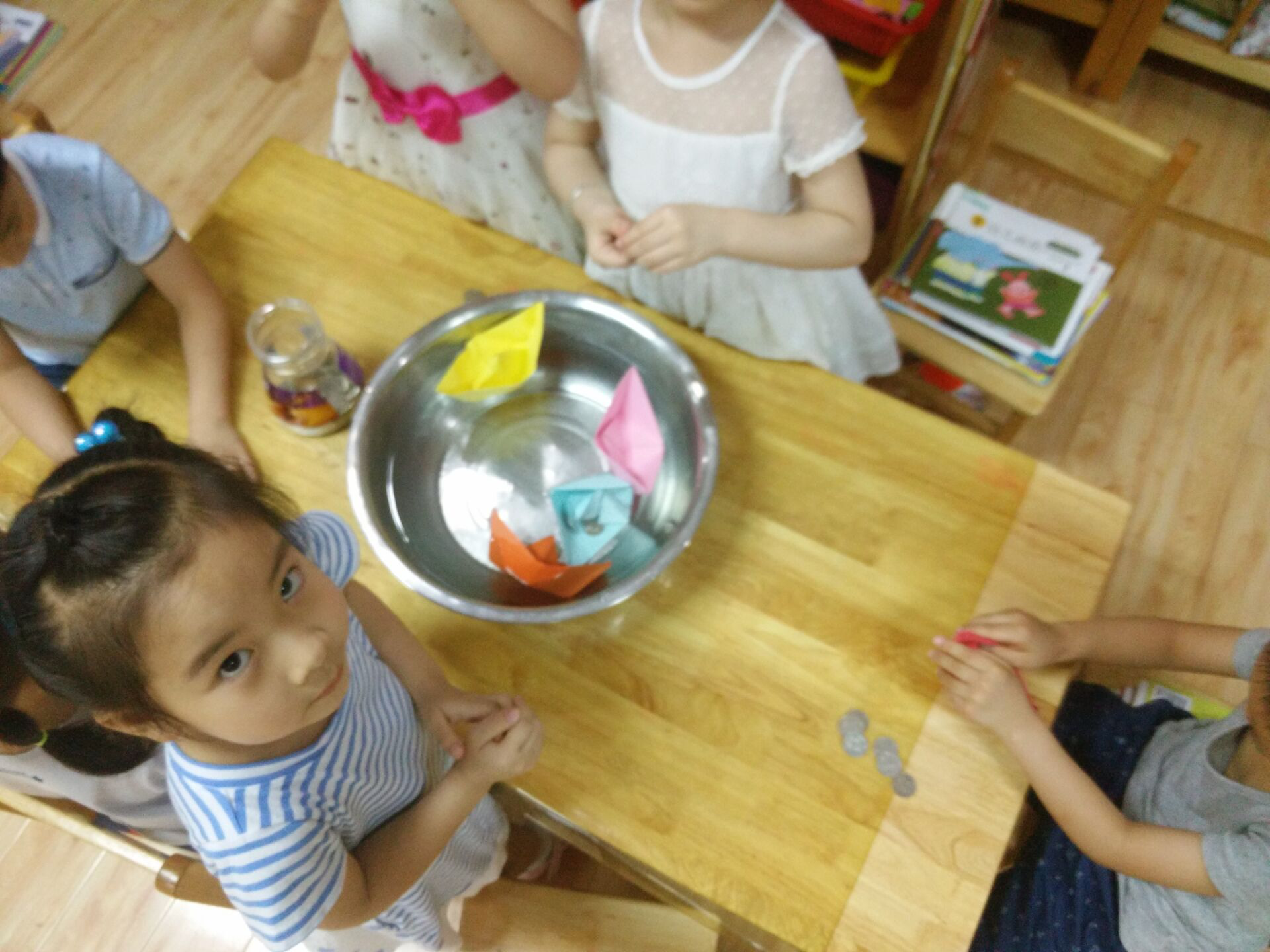 幼儿有玩放纸船的游戏经验。