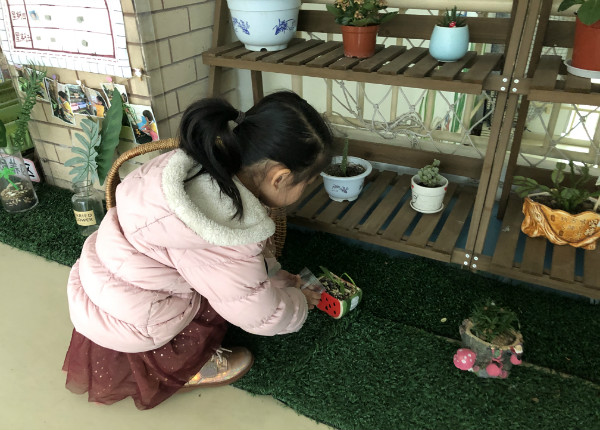 游戏时间孩子们拿起水壶给花草浇水,角角落落里都留下了孩子们可爱的身影,一个个动人的画面在老师们的视线中真实展现。