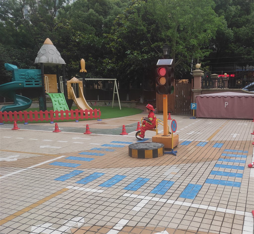 活动中,有的小朋友在加油站扮演“加油员”,负责给小朋友的车加油;有交通信号灯,还有一些交通安全标志,在游戏前让幼儿反复认识这些交通标志。幼儿自觉遵守规则,整个交通区骑行活动的开展井然有序。温暖的阳光照耀到孩子的脸上,每个人都是那么的开心!