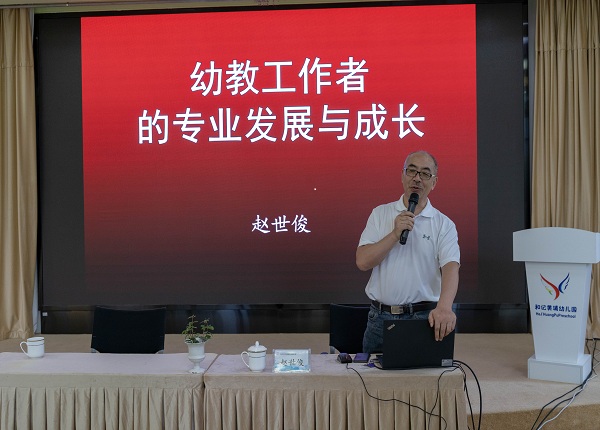 赵老师是常州市中小学生涯教育赵世俊名师工作室领衔人、常州市家庭教育与心理辅导名教师工作室领衔人、江苏省学校心理专业委员会副主委。赵老师以扎实的专业知识和新颖的教育理念为大家作了关于幼小衔接师资专业化的相关讲座,他用理论结合实践、案例拓展、经验分享,让我们认识到幼小衔接的工作的重要性,更新了幼小衔接期的理解,明确了幼儿园开展幼小衔接工作的方向。