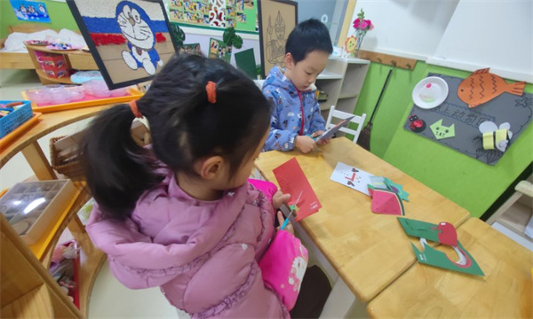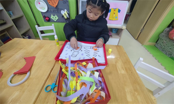 游戏进行中,有的孩子选择喜欢的绘本中生动的画面用心勾勒,有的剪,有的画,有的撕贴,还有的在揉搓,一个个形态各异、生动形象的作品在孩子指间绽放耀眼的光芒。她们的作品可能不够完美,但是每一个都各具特色,都是每个孩子心灵的写照。他们用喜欢的方式装点出了美丽的童心世界。