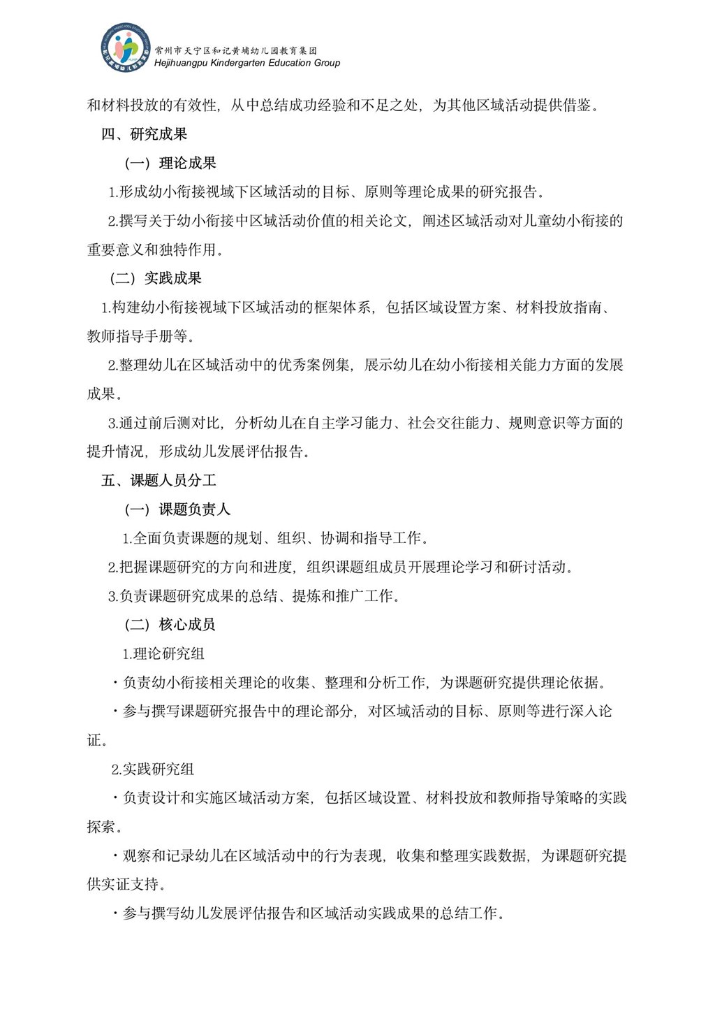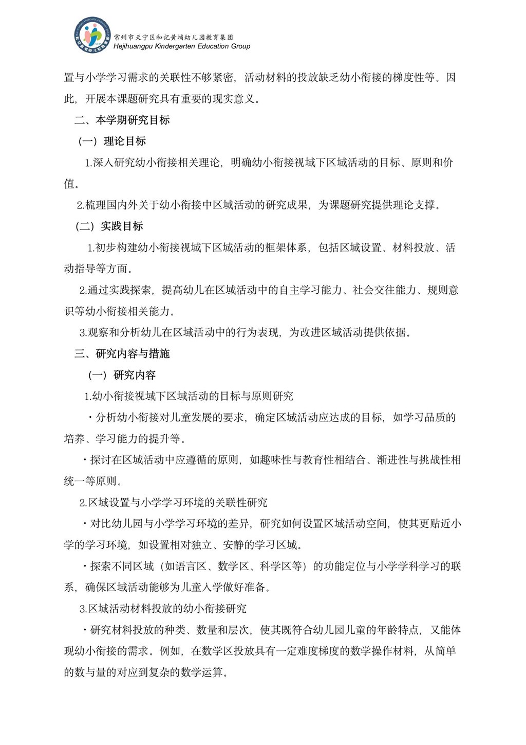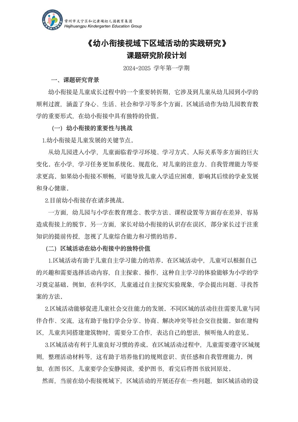 【计划总结】《幼小衔接视域下区域活动的实践研究》 课题研究阶段计划(2024-2025学年第一学期)