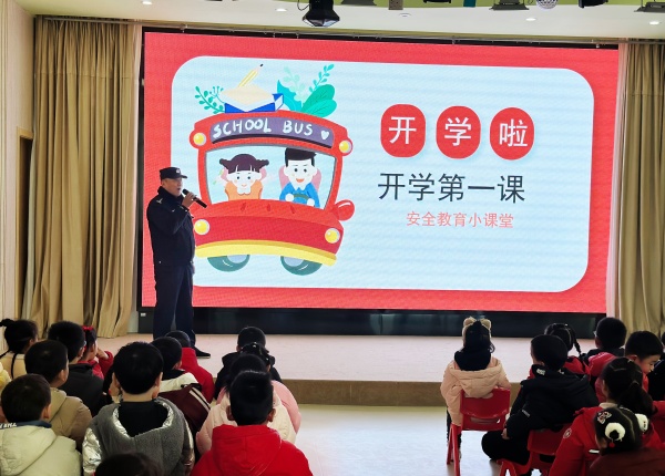 开学第一课,是一次迎新课,更是一次必修课。2月13日下午,天宁区新丰街派出所朱警官(和记黄埔幼儿园法制副校长)来到我园,根据幼儿年龄特点开展了一堂生动有趣的“开学安全第一课”,向幼儿科普安全知识,交通知识,增强幼儿自我保护意识和能力,增强多方面的防范意识。