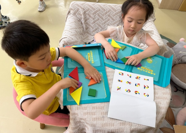 当阳光铺满教室一角,中孩子们早已围坐在小桌前,被五彩的七巧板深深吸引。小手在木块间来回试探摸索,眼神里满是专注与新奇。这小小七巧板,正悄然开启孩子们认知几何图形与空间关系的智慧之门。
